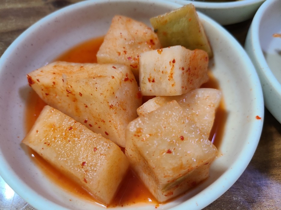 깍두기는 아삭아삭해서 씹는 맛이 있어요