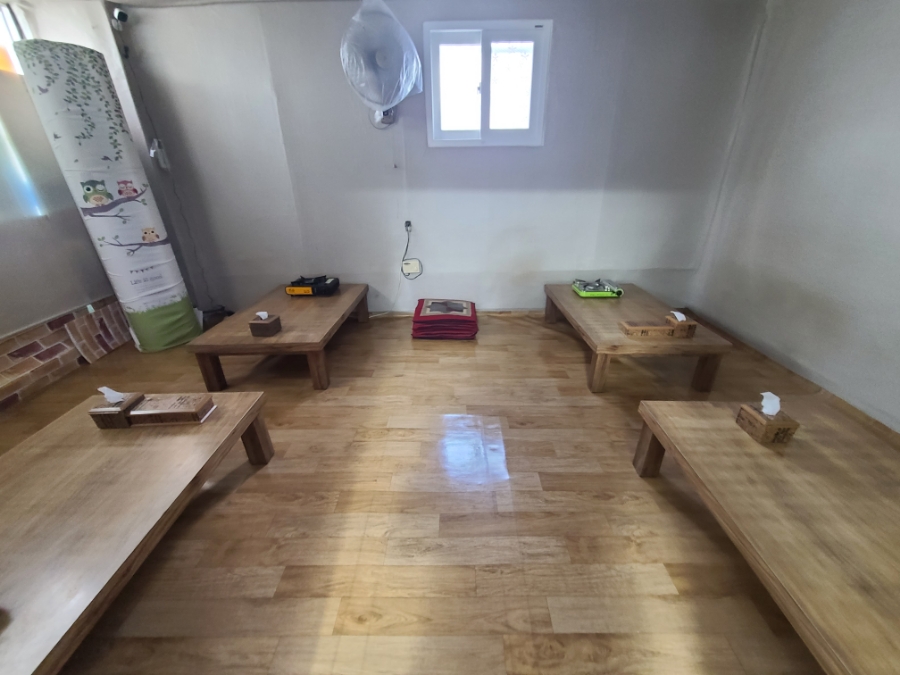 테이블은 4개가 있고, 안쪽 좌식 테이블도 4개가 있어요