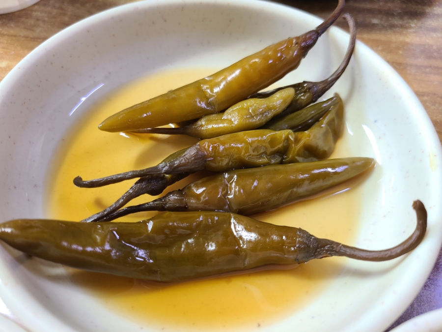기본 반찬은 깍두기, 배추김치, 고추장아찌 3가지 입니다.