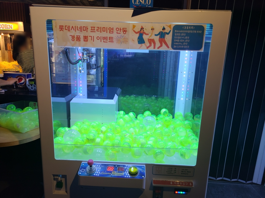 애들이 좋아할 인형 뽑기와 랜덤박스 자판기도 있어요