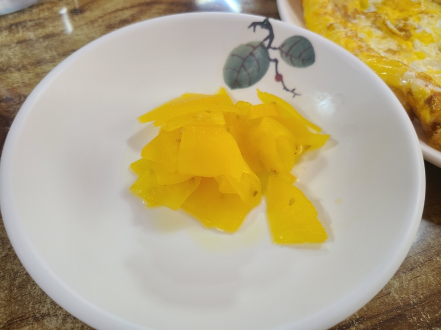 사실 기본 찬이라기보다는 비빔밥을 만들기 위한 재료와 혀를 보호해 줄 단무지에 가까워요