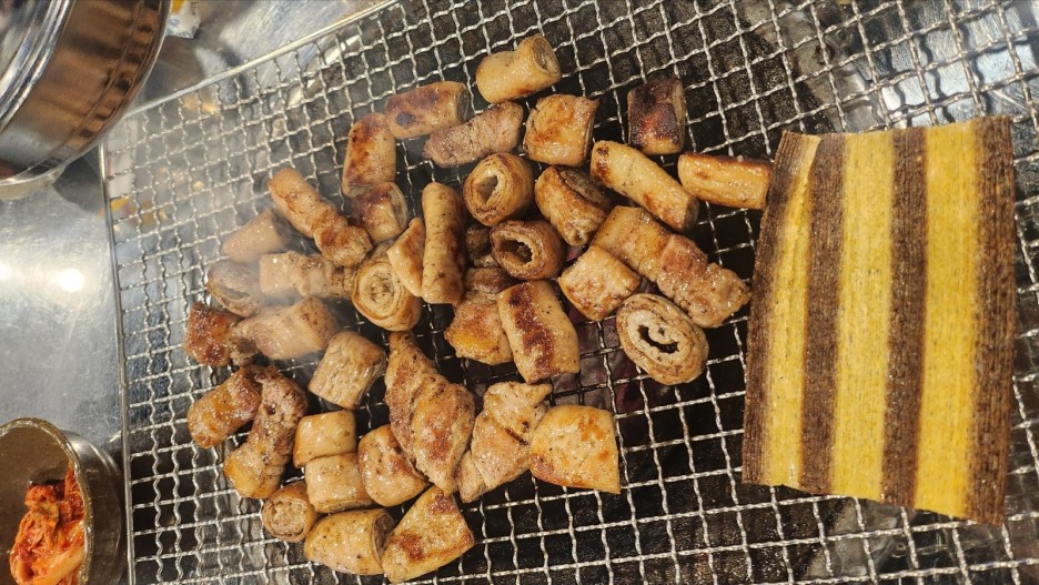 막창을 구우면서 쫀쫀이도 같이 구워줍니다