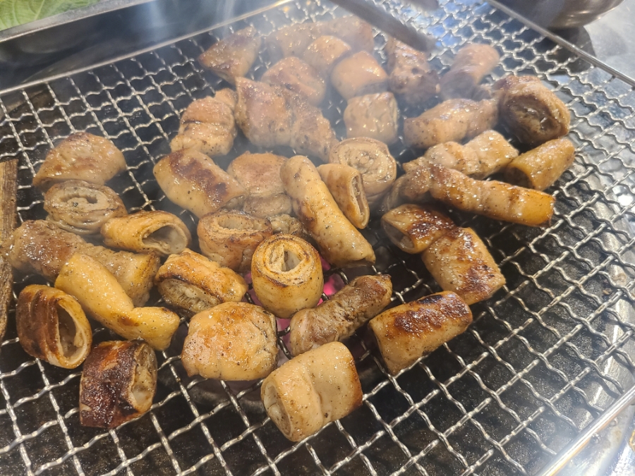 막창이 초벌 되어 나오면 저희는 조금만 더 익혀주면 됩니다.