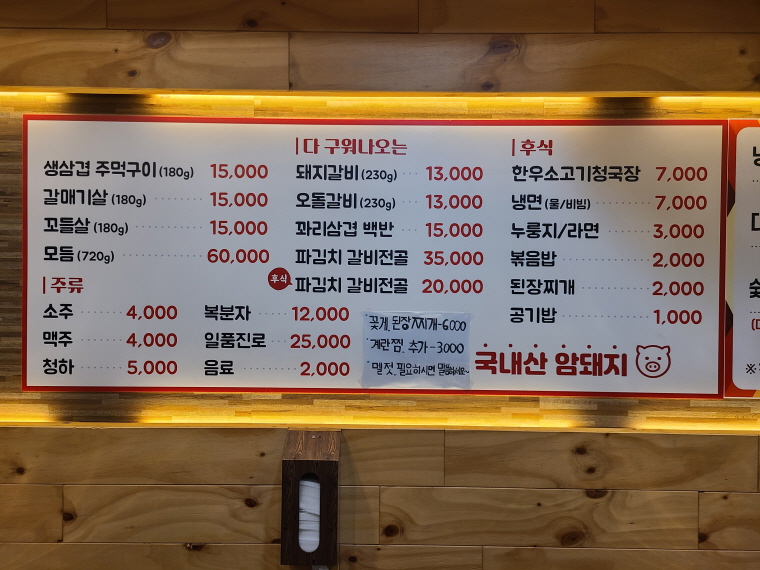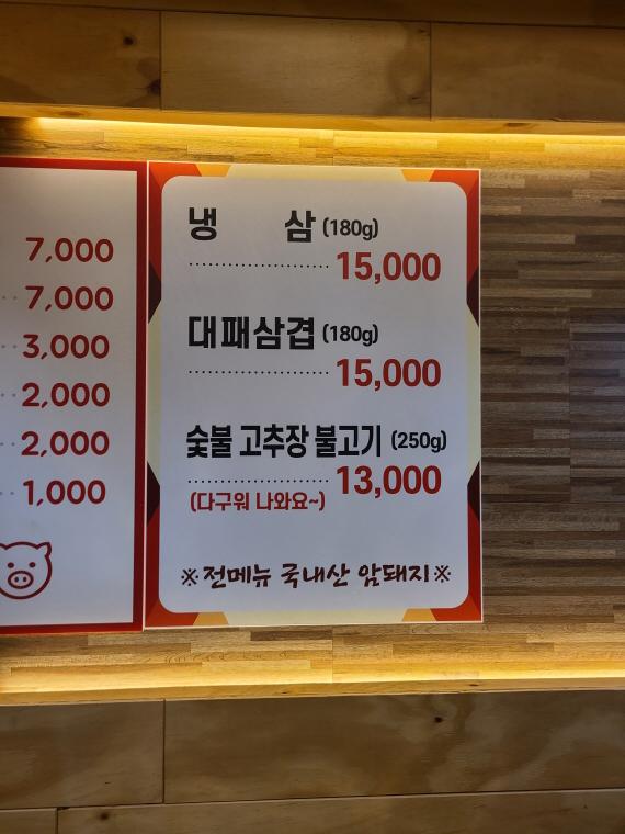 전 메뉴 국내산 암돼지 입니다