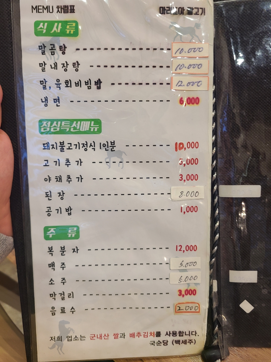 말곰탕, 말내장탕, 말육회비빔밥, 냉면