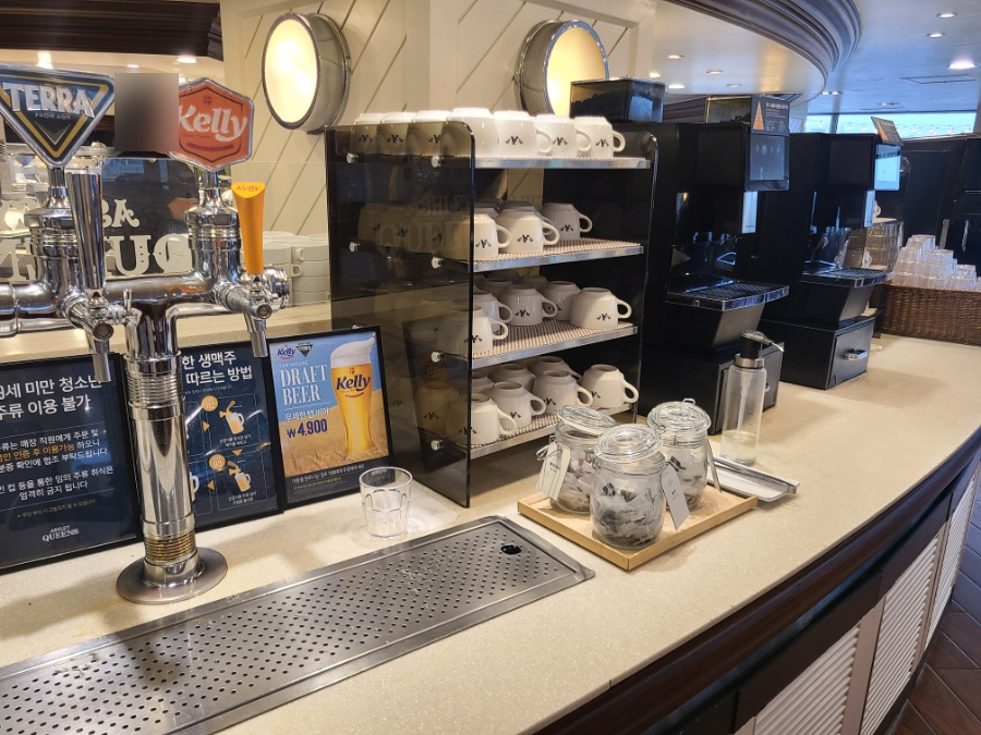 피치 루이보스, 블루 레몬 에이드, 사과주스, 애플망고 요거트, 생맥주(TERRA, KELLY), 커피 등