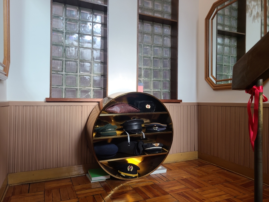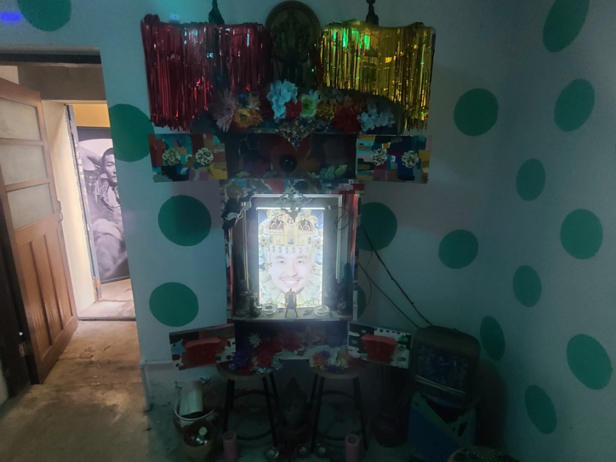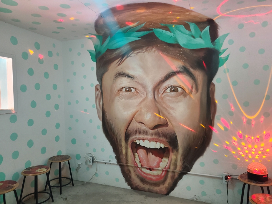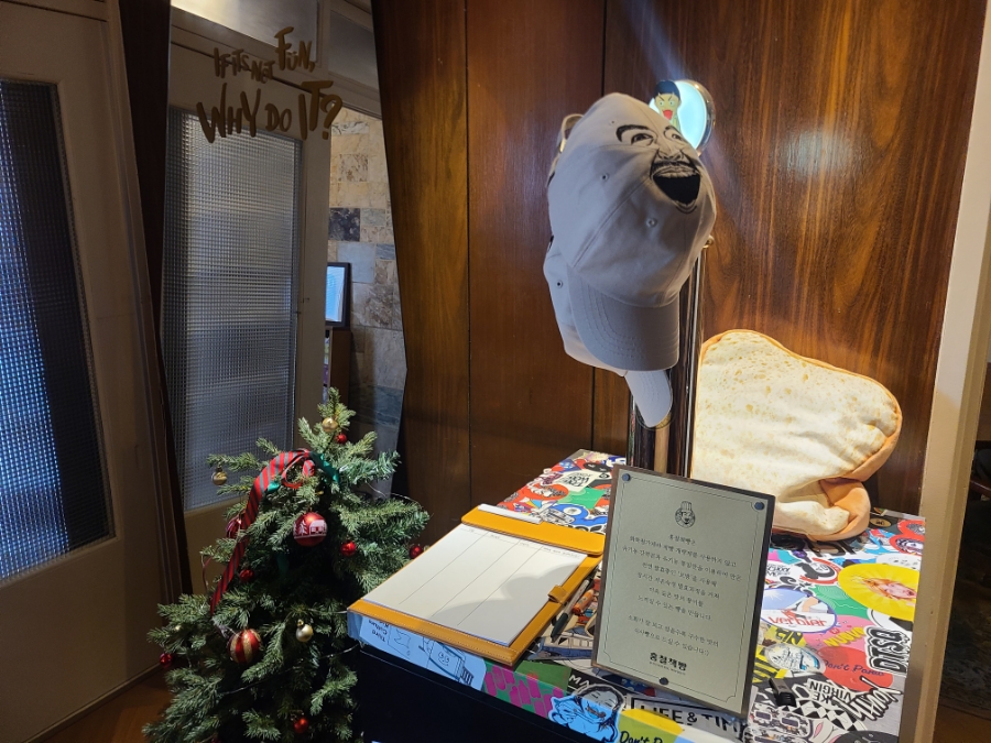 2층은 거실과 방 1개로 되어있고, 거실은 굿즈들과 대형 황금 홍철동상이 반겨줘요