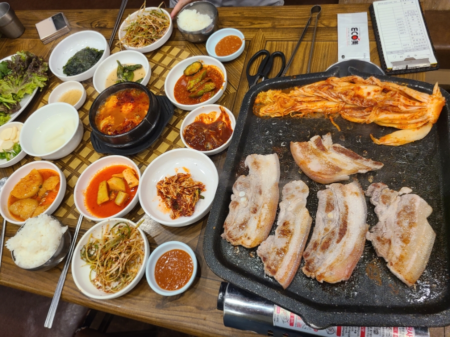 사실 처음에는 우렁쌈밥백반 먹으러 갔다가 옆에서 고기 굽는 냄새가 너무 향긋해서 넘어가버렸어요