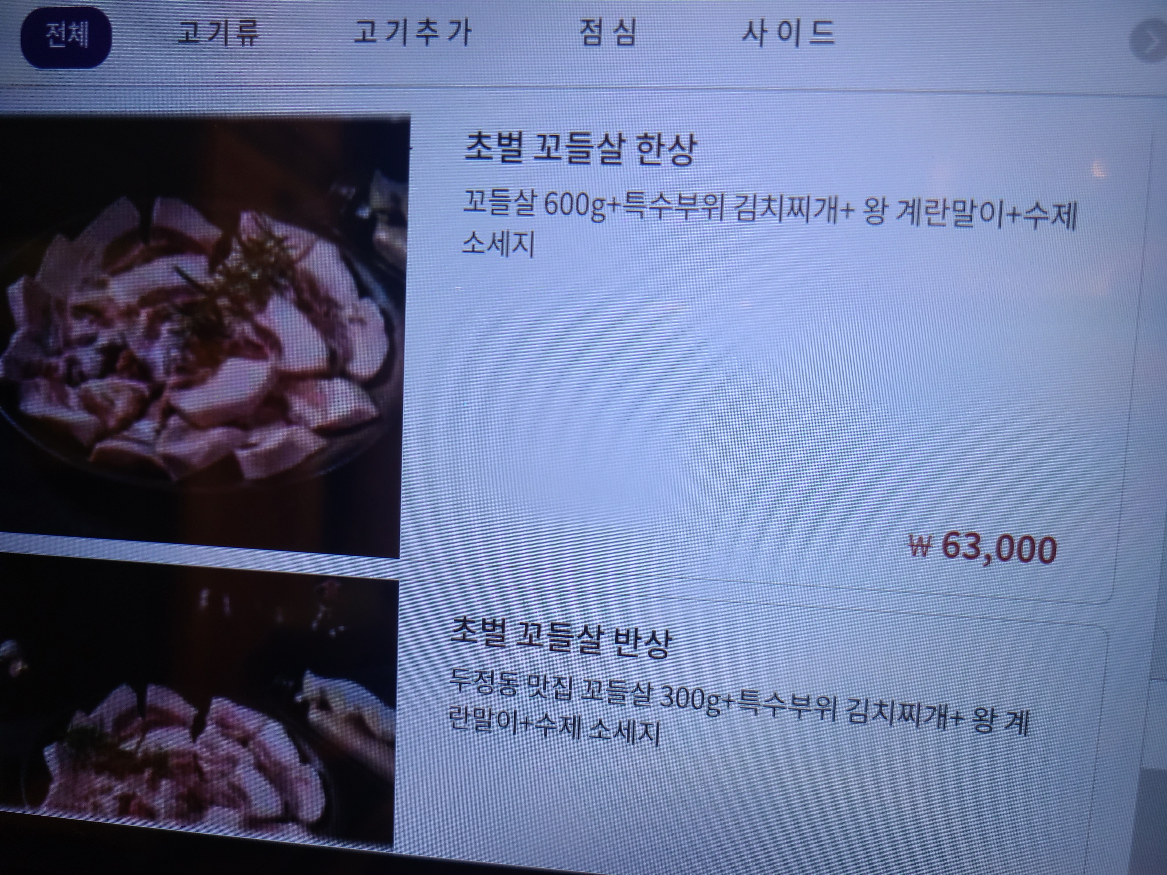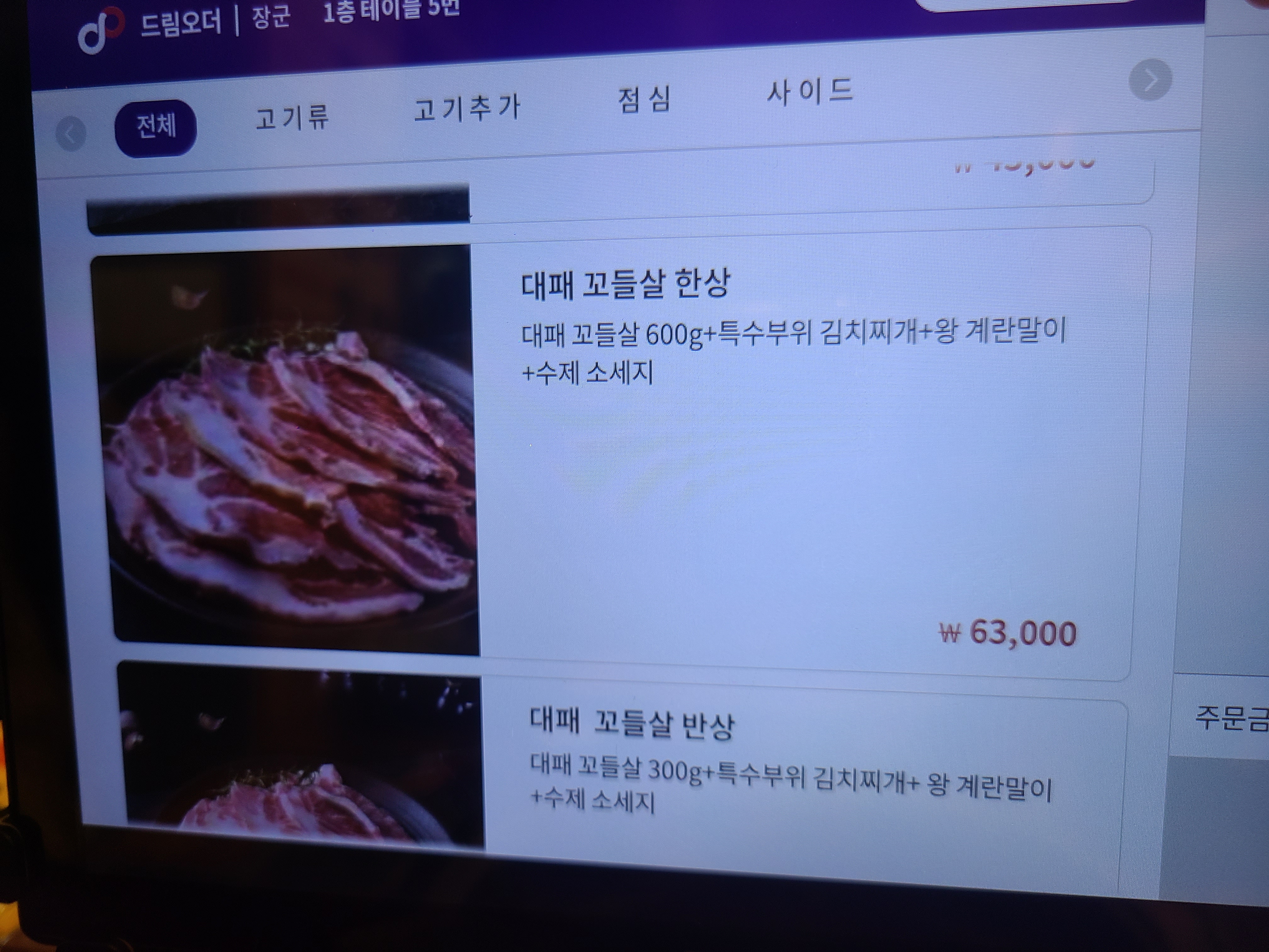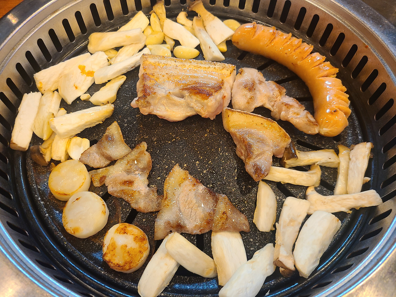 조개관자는 불판 위에 바로 올려주셔서 고기 사진에는 없어요
