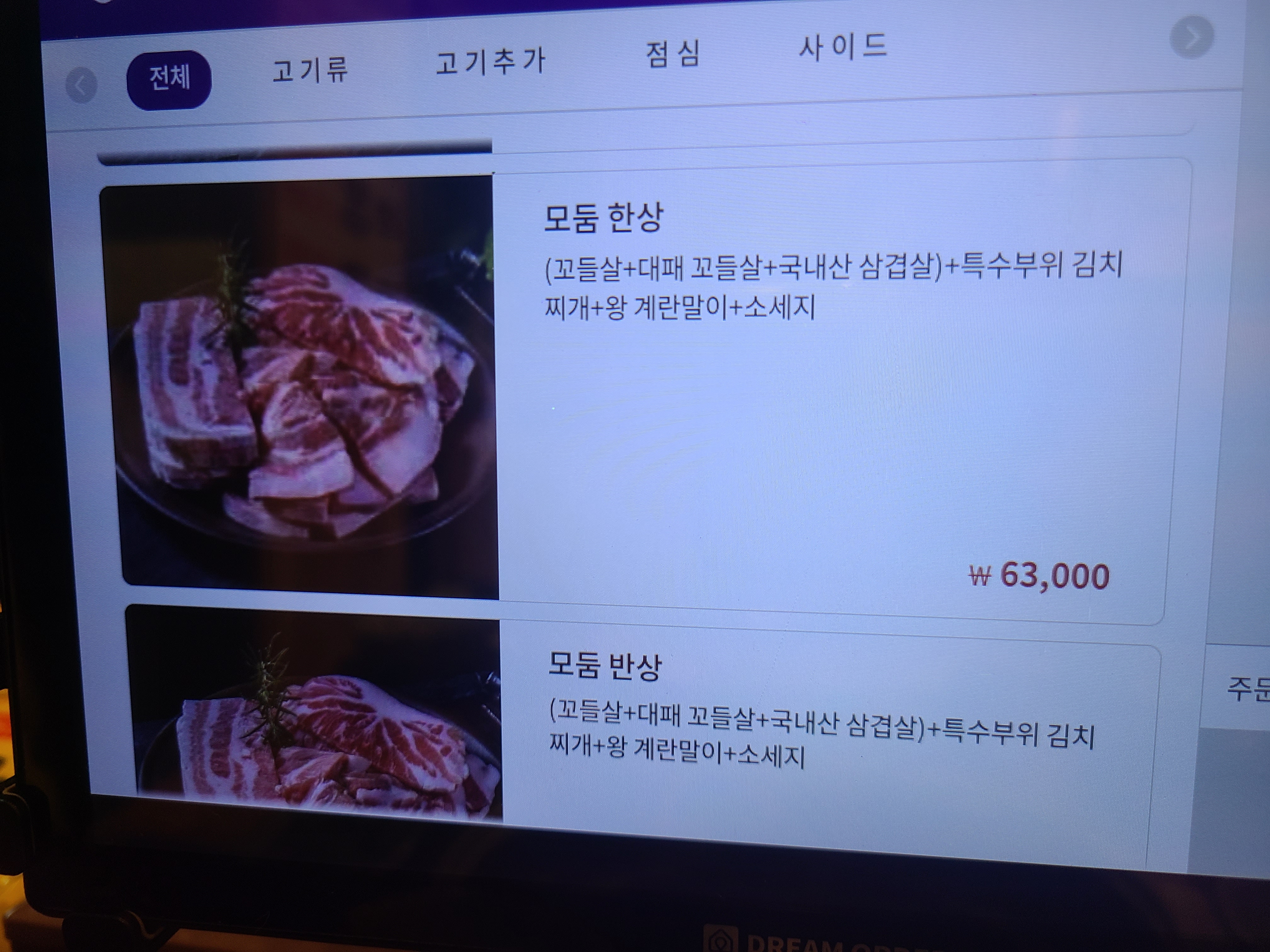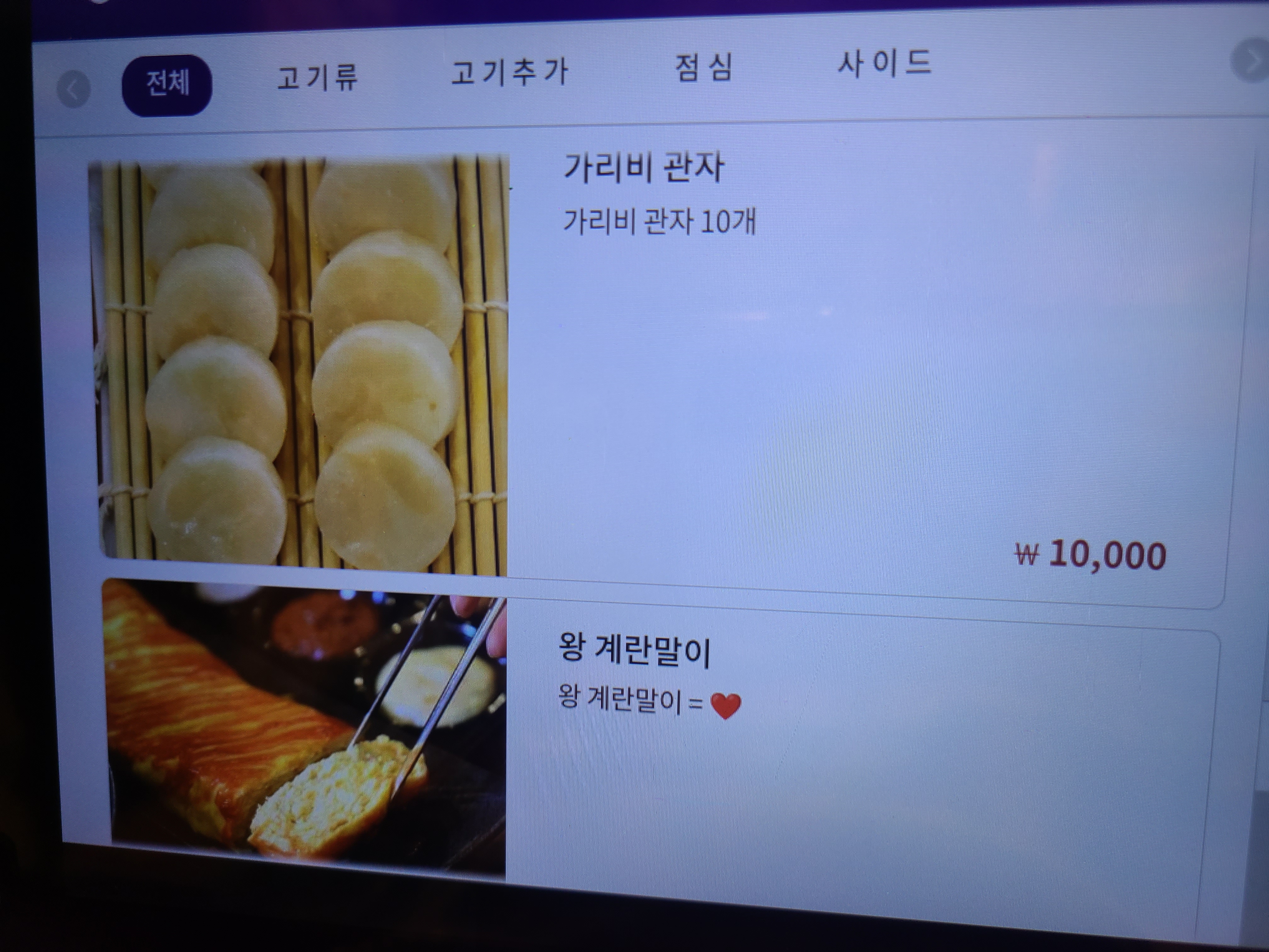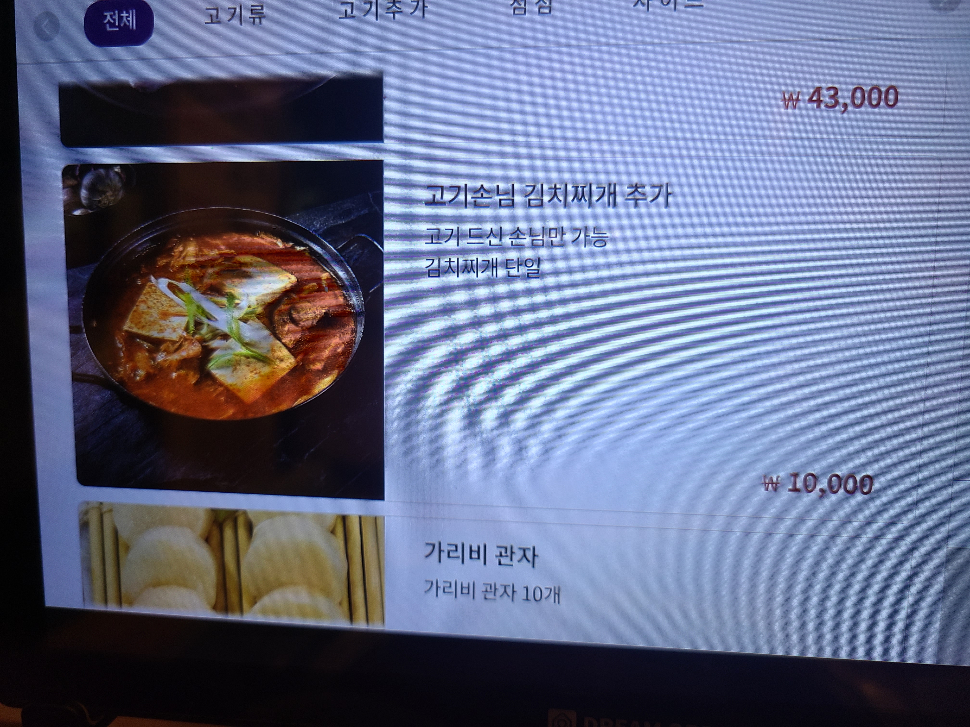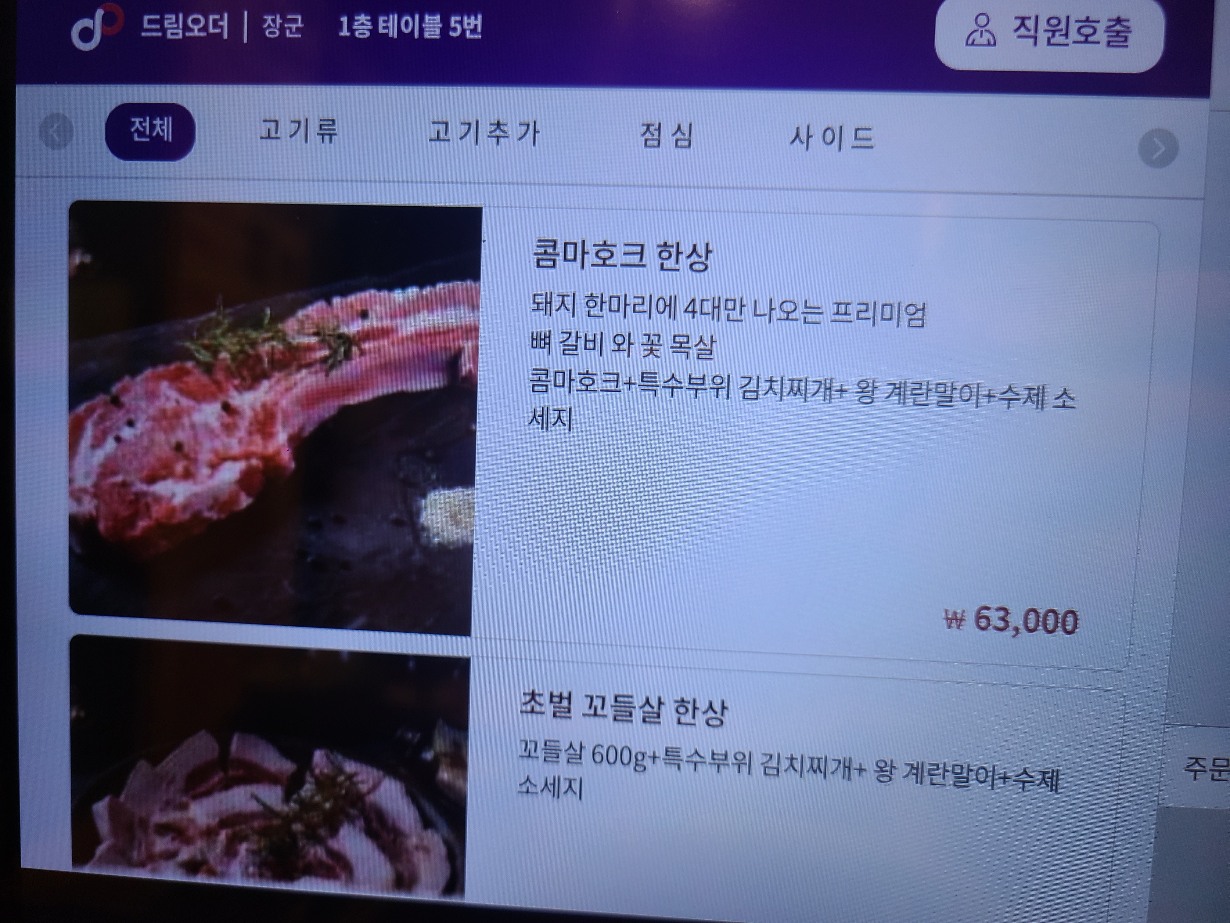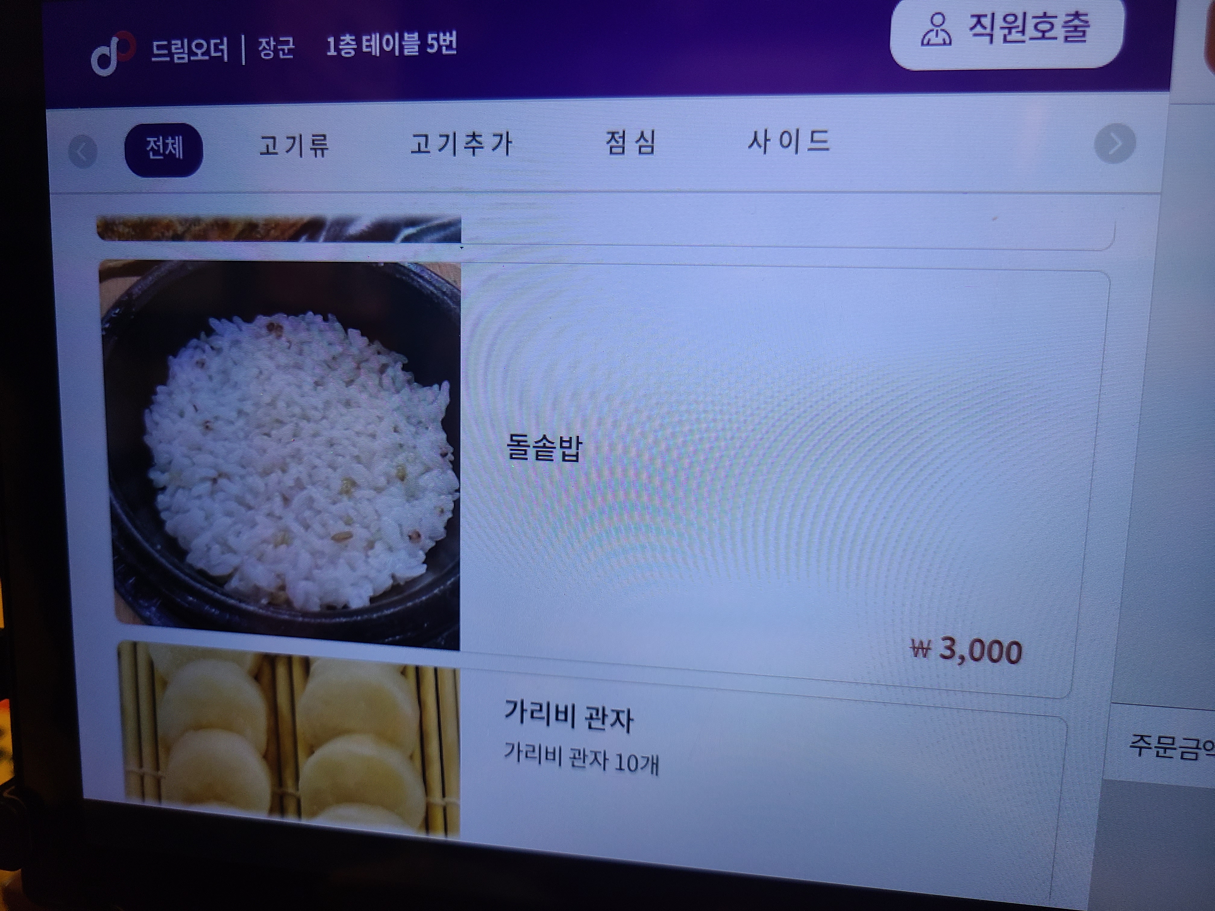 별도의 메뉴판이 없고, 테이블마다 태블릿이 비치되어 있습니다.