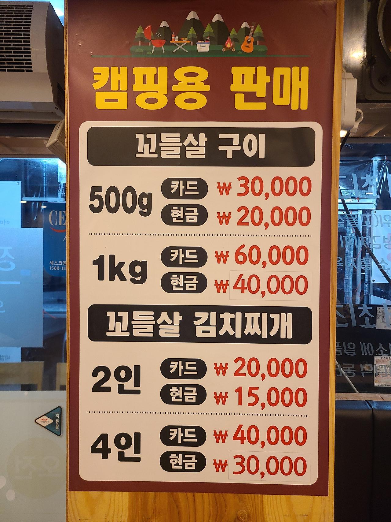 캠퍼들을 위한 꼬들살과 꼬들살 김치찌개도 판매하고 있어요
