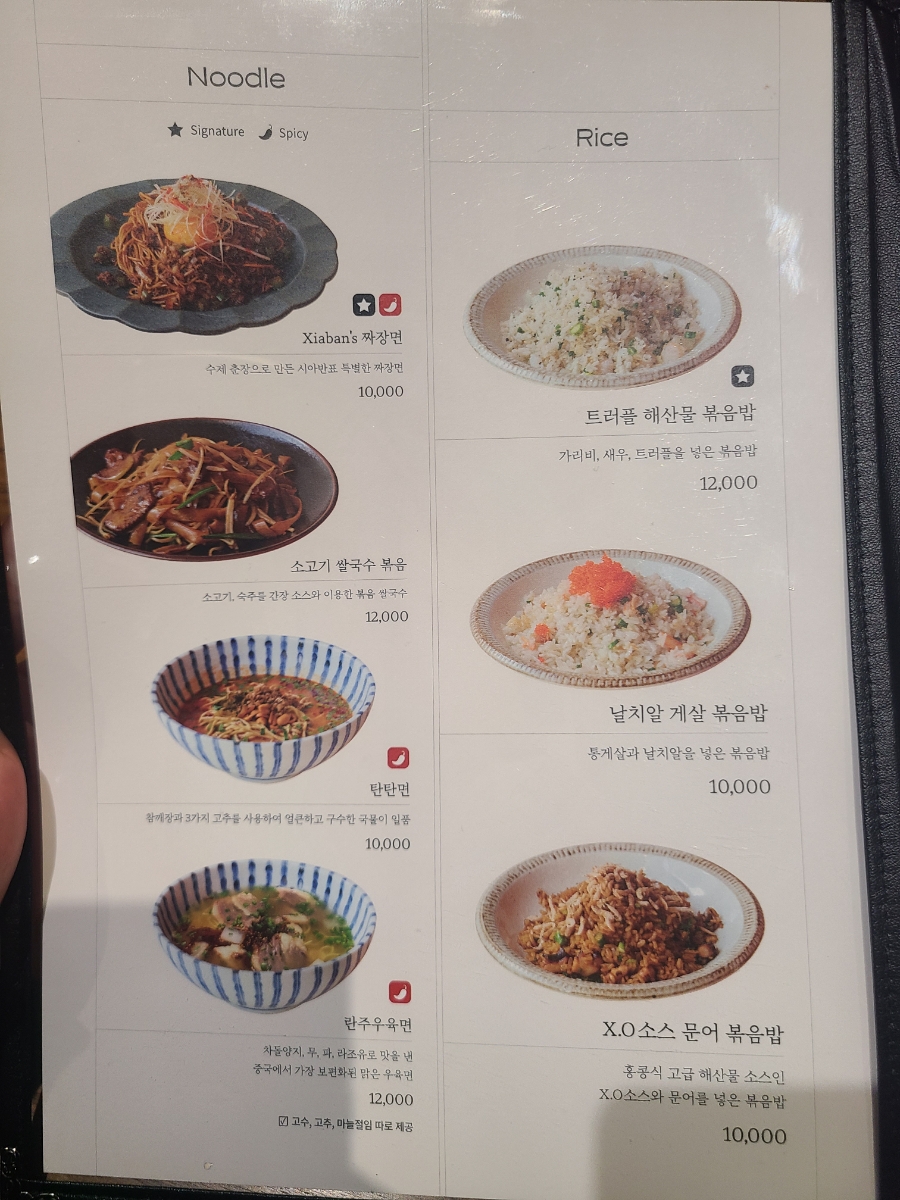 시아반 짜장면, 소고기 쌀국수 볶음, 탄탄면, 란주우육면