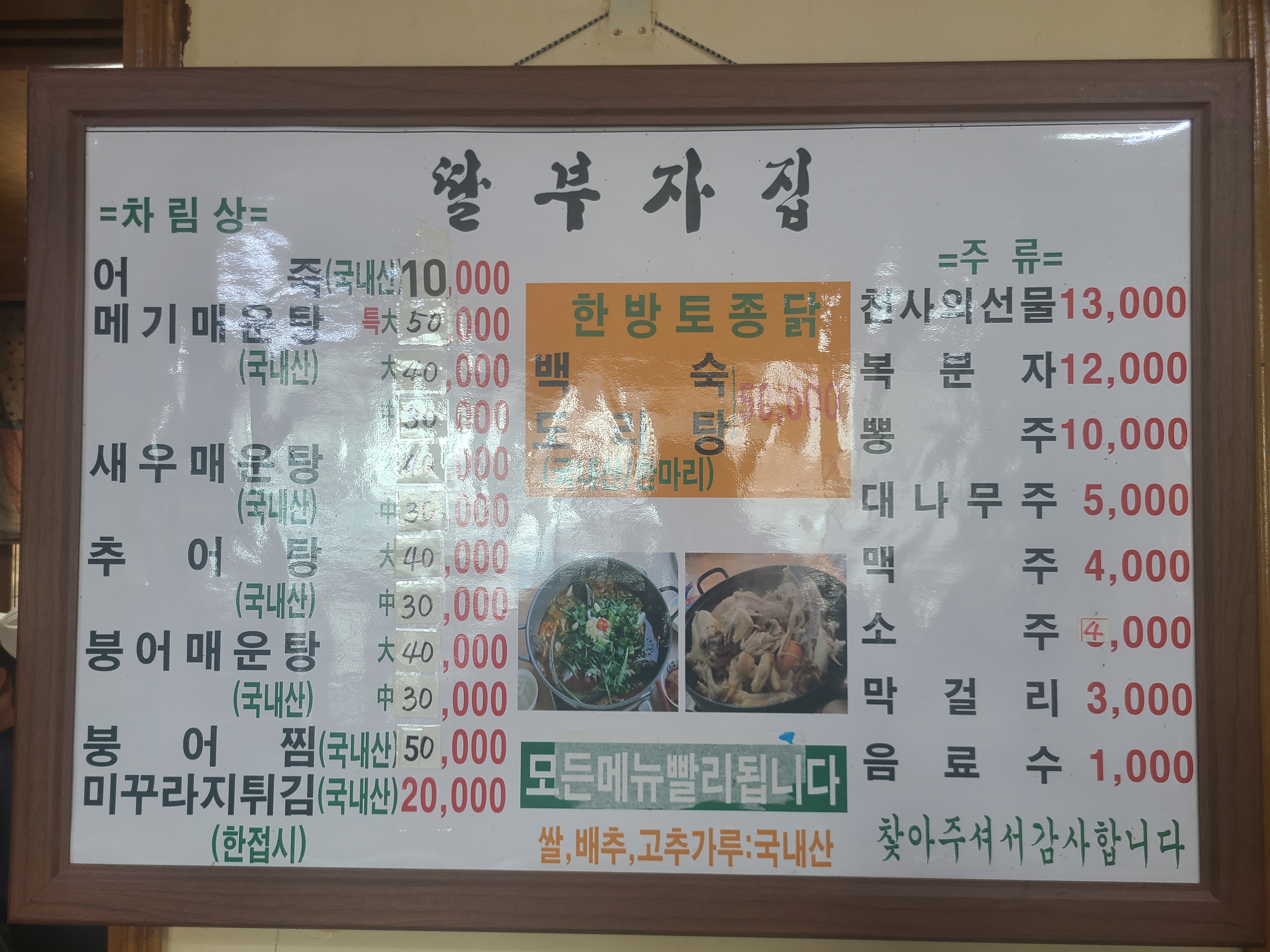 모든 재료는 국내산 입니다.