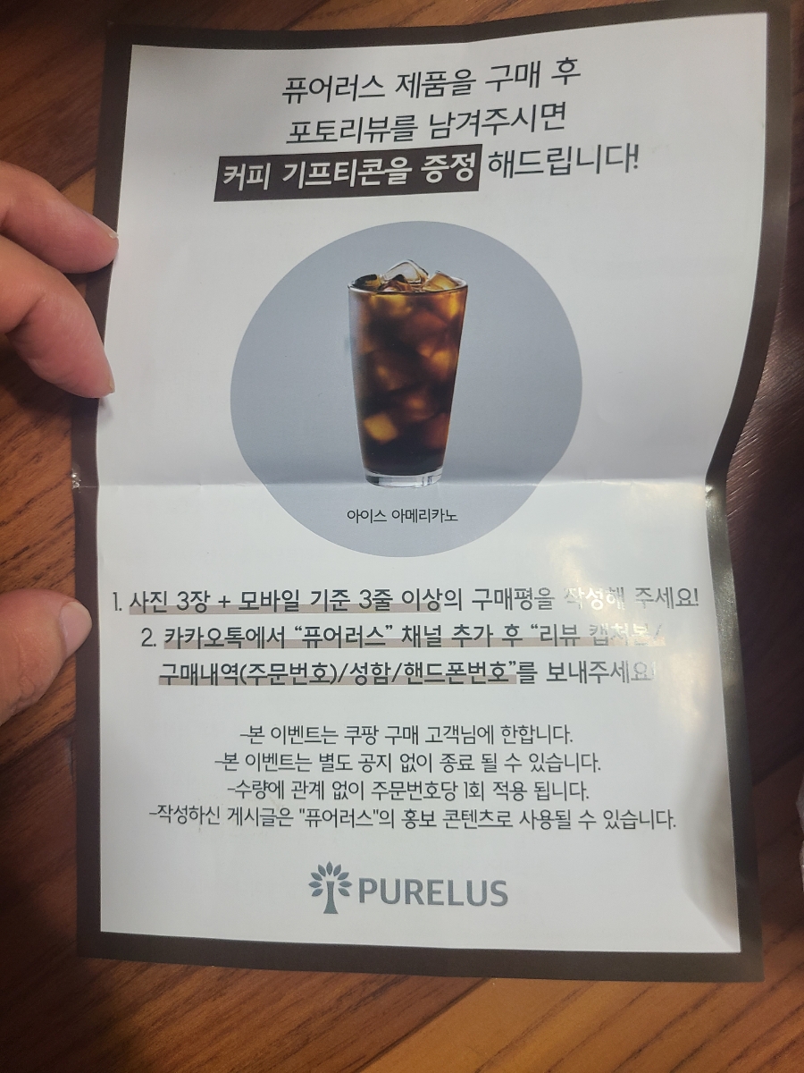 포토 리뷰를 남겨주면 커피 기프티콘을 증정한다고 합니다.